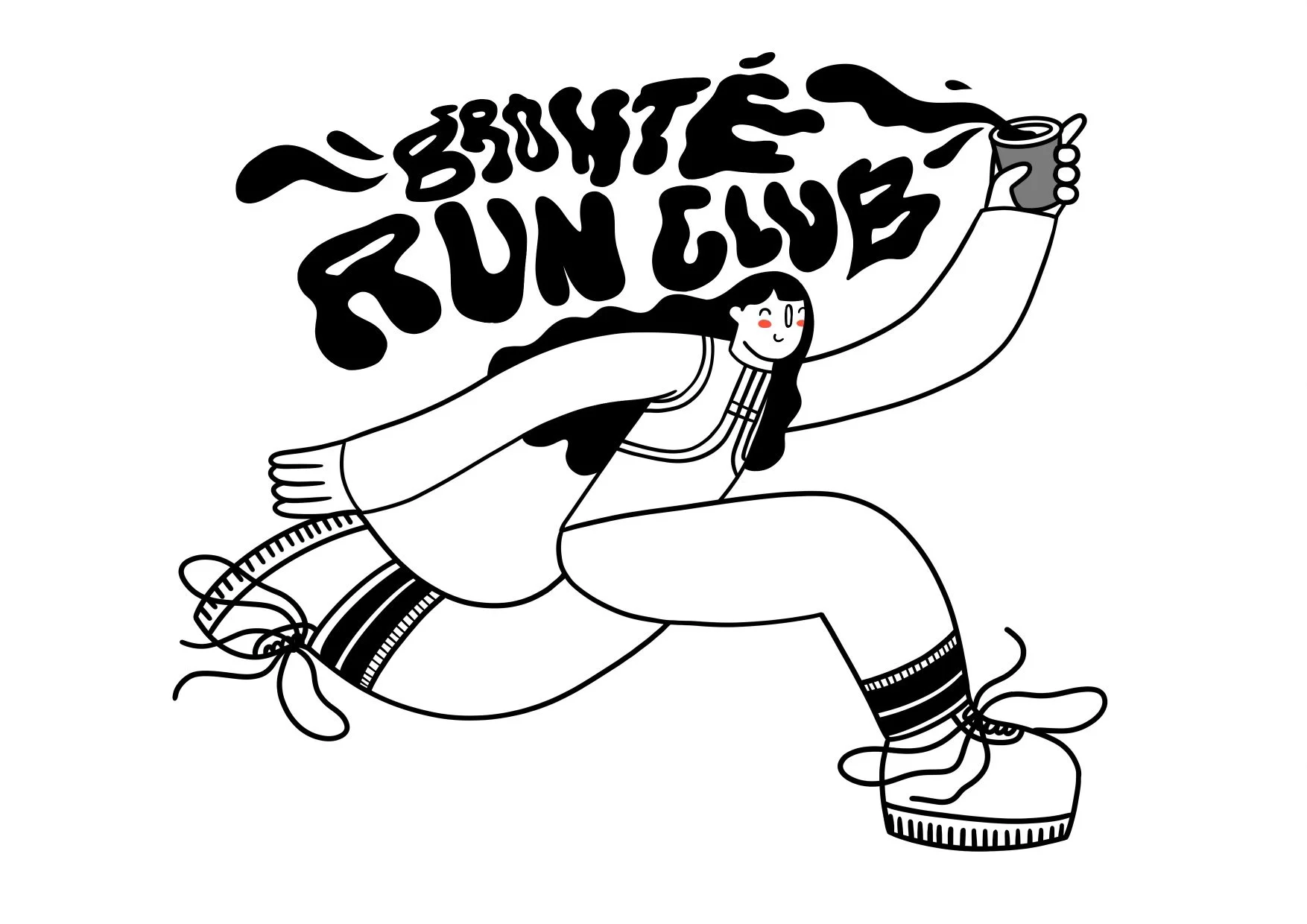I was lucky enough to collaborate again with my favourite coffee shop in Saffron Walden, Bronte. When they asked me to create a logo for their new Bronte Run Club, I couldn’t wait to get started. I wanted to capture the joy and community that the run club brings to so many people in town. Bronte and Tristan have built such a warm, lively hub at the cafe, so it feels only natural that this spirit extended into their own run club.